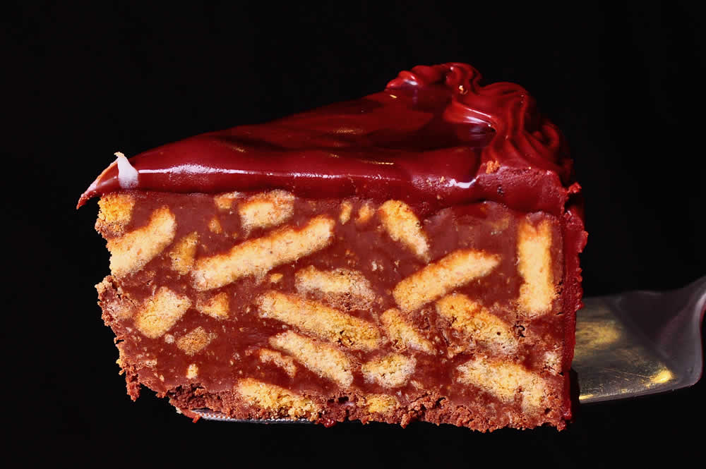 Embark on a delightful journey of chocolate bliss with our signature chocolate biscuit cake. This delectable treat features layers of crumbly chocolate rich biscuits fused together by a velvety blend of coca-infused goodness.
